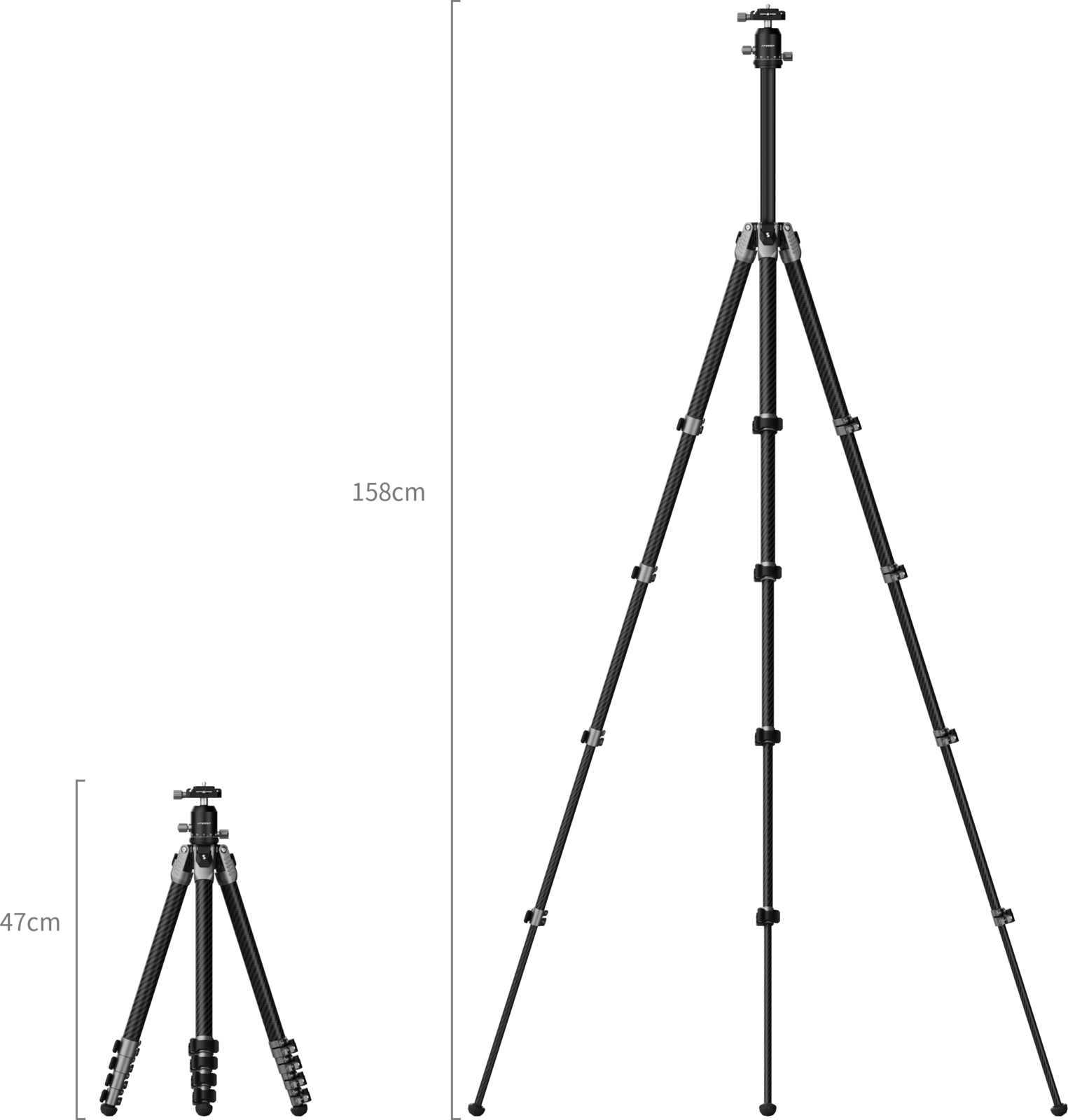 Minitrepied realizat din 10 straturi de carbon japonez TORAYCA, echipat cu cap de tip bilă. Trepiedul este însoțit de geantă și un kit multi-tool. Capacitate...